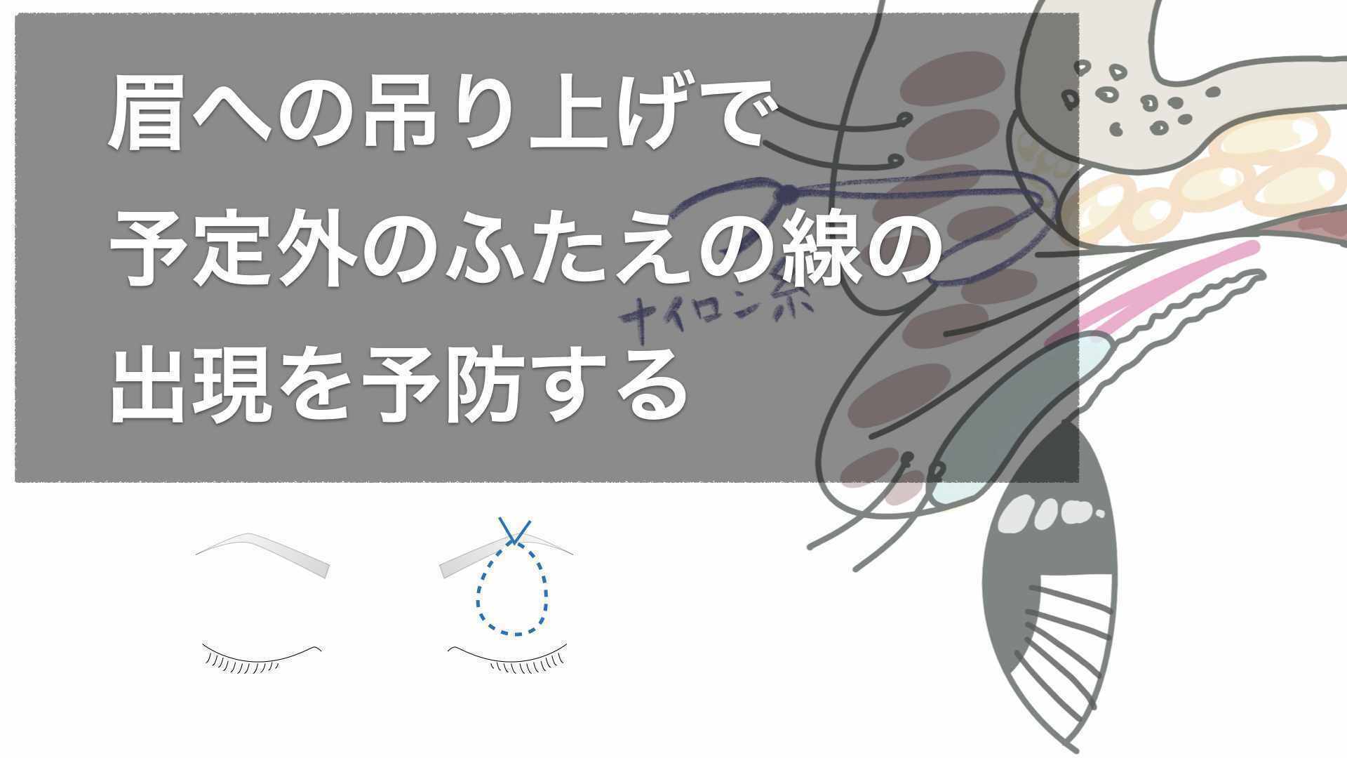 眉への吊り上げ法。眼瞼下垂手術後の予定外線予防のために